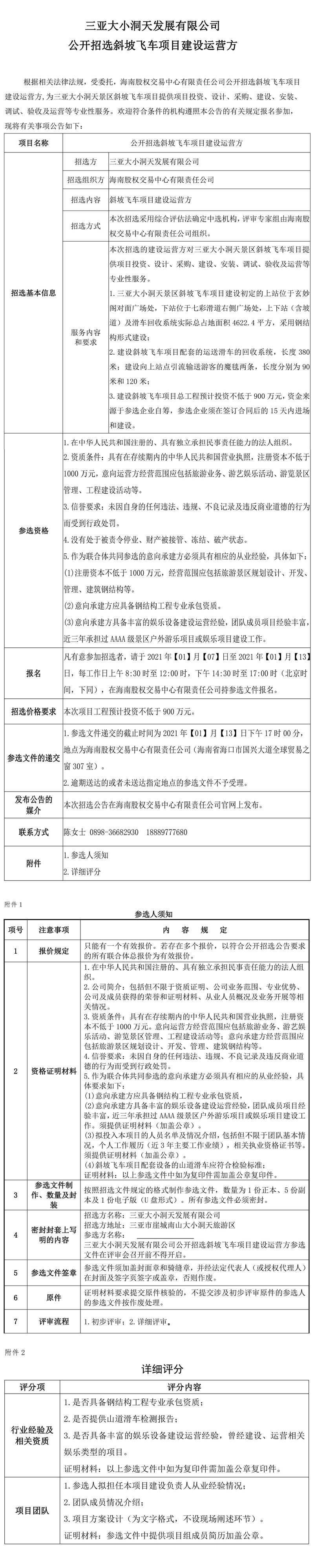 關(guān)于三亞大小洞天發(fā)展有限公司公開招選斜坡飛車項目建設(shè)運(yùn)營方的公告