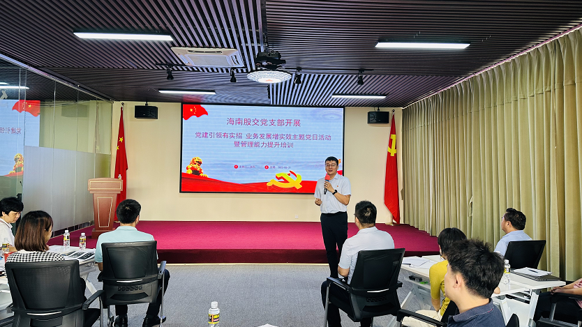 6月21日,海南股交黨支部開(kāi)展“黨建引領(lǐng)有實(shí)招、業(yè)務(wù)發(fā)展增實(shí)效”主題黨日活動(dòng)暨管理能力提升培訓(xùn),公司中層以上管理人員及黨員同志參加活動(dòng)。