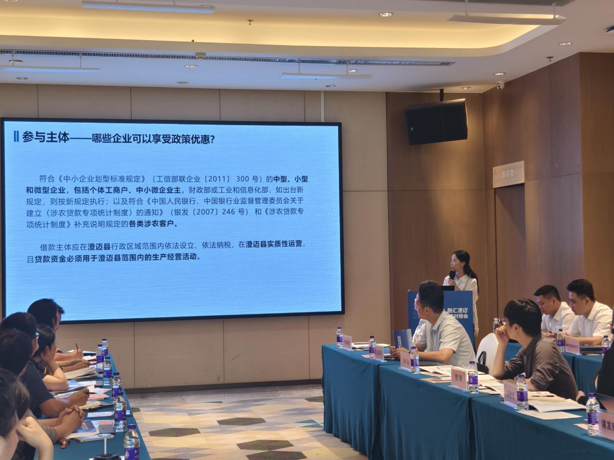 對(duì)接會(huì)設(shè)置政策解讀、產(chǎn)品推介、互動(dòng)交流三大環(huán)節(jié),系統(tǒng)推進(jìn)融資服務(wù)精準(zhǔn)化、實(shí)效化。在政策解讀環(huán)節(jié),澄邁縣政府辦金融工作室負(fù)責(zé)人圍繞政策背景、參與主體、政策優(yōu)惠及貼息流程等方面重點(diǎn)解讀《澄邁縣企業(yè)貸款貼息資金管理辦法》,幫助企業(yè)全面了解貸款貼息政策,鼓勵(lì)企業(yè)用好用足政策紅利。海南省登記結(jié)算就“智金平臺(tái)”的功能模塊、操作流程及服務(wù)優(yōu)勢(shì)進(jìn)行了講解。據(jù)悉,澄邁縣企業(yè)通過智金平臺(tái)申請(qǐng)貸款,不僅可享受縣級(jí)財(cái)政專項(xiàng)貼息支持,有效降低融資成本,還可申請(qǐng)使用海南省企業(yè)應(yīng)急續(xù)貸資金池,獲得低成本過橋資金支持,切實(shí)緩解短期周轉(zhuǎn)壓力。